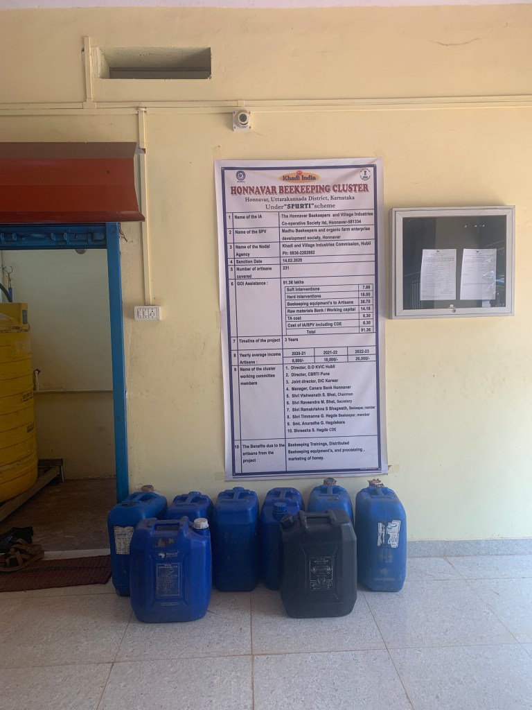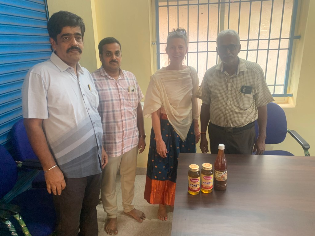 In February 2025 I was lucky to visit The Honnavar Beekeepers and Village Industries Co-operative Society Limited in Karnataka. It is a co-operative quality tested Society that promotes beekeeping and other Rural small scale industries in Honnavar taluk. They provide quality assured honey and other rural small scale industrial products to the customers at an affordable price and organise various trainings to encourage bee keepers with all support they may need.
